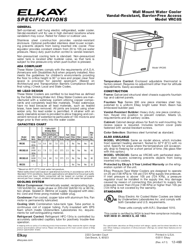 by the Safe Drinking Water Act. Elkay Water Coolers are manufactured with a waterway system utilizing copper components and completely lead-free materials. These waterways