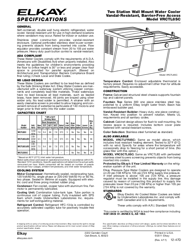 Elkay Electric Air Cooled Water Coolers are listed