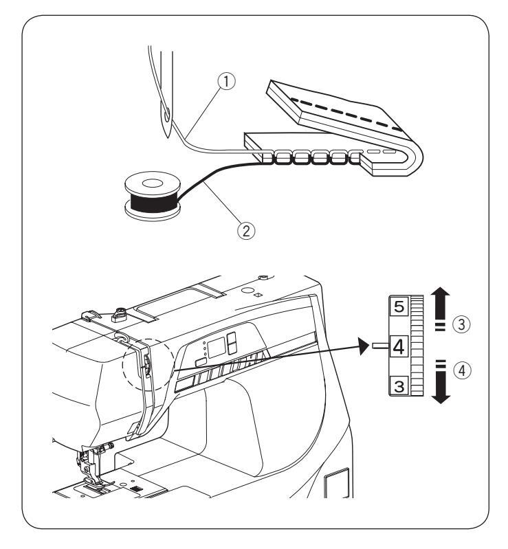 Jeśli ścieg jest zbyt ściśnięty, przesuń regulator w kierunku "+".