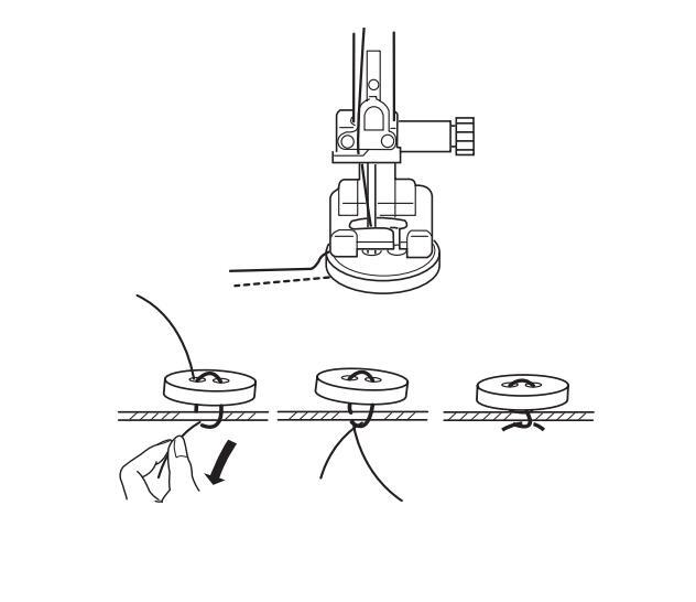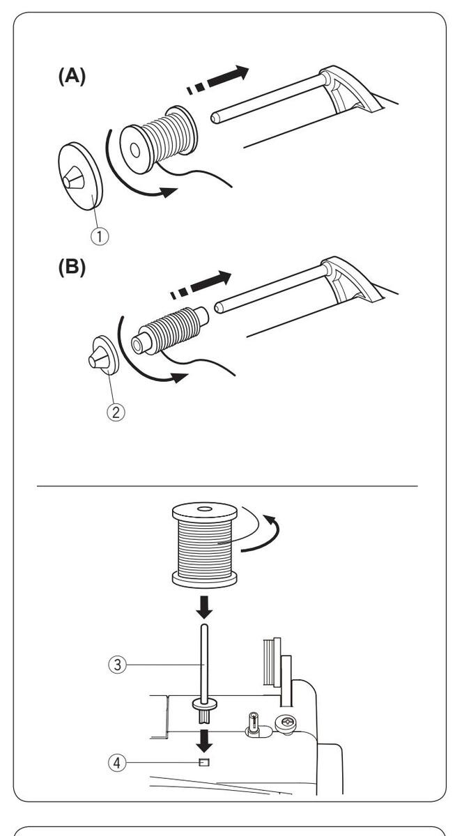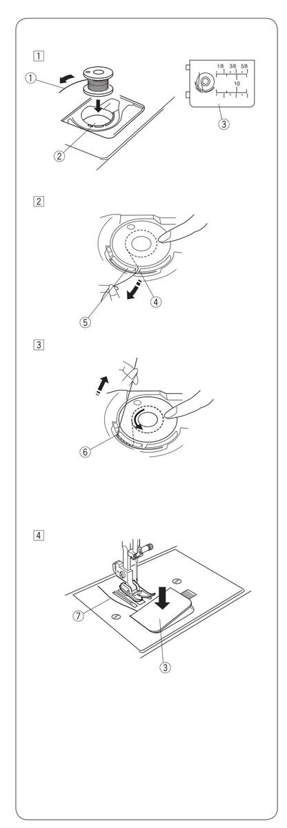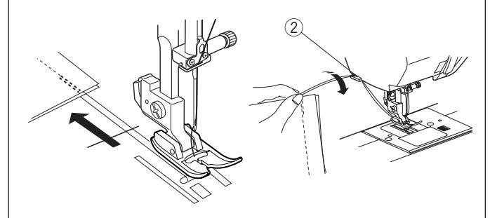 Przed rozpoczeciem szycia, wyciagnij do tyłu ok. 4" (10 cm) nici od szpulki.