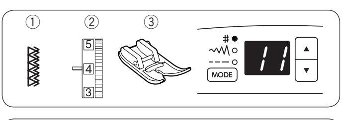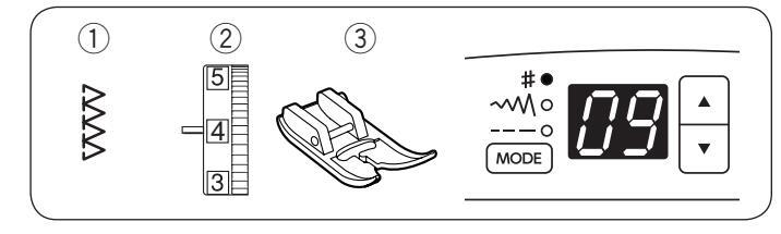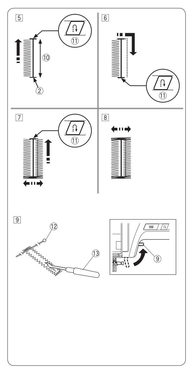| (3) Przycisk regulacji długości ściegu | 9 |