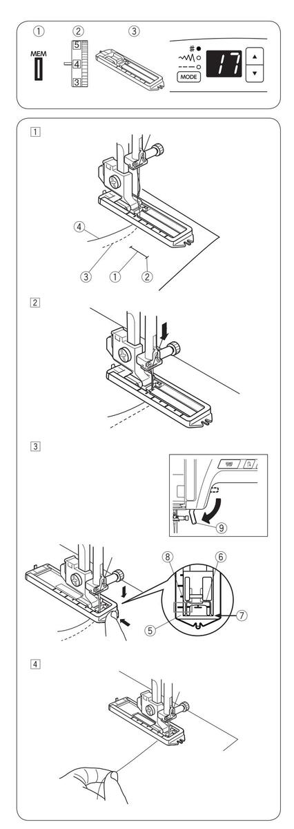 | (2) Przycisk regulacji szerokości ściegu | 9 |