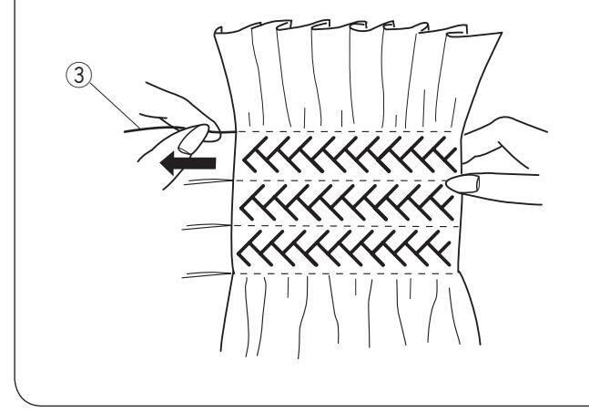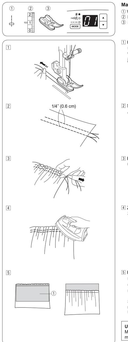 Ustaw naprężenie nici na 3 - 6 i wybierz wzór marszczenia.