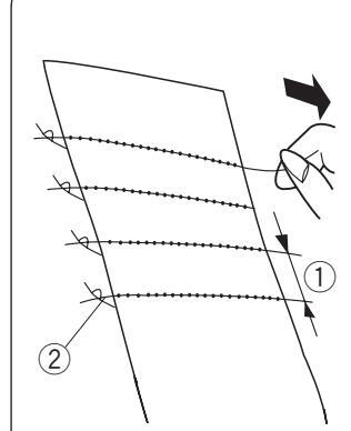 Szvi rzedy ściegów prostych 1 cm (3/8") od siebie w poprzek obszaru, który ma być zmarszczony