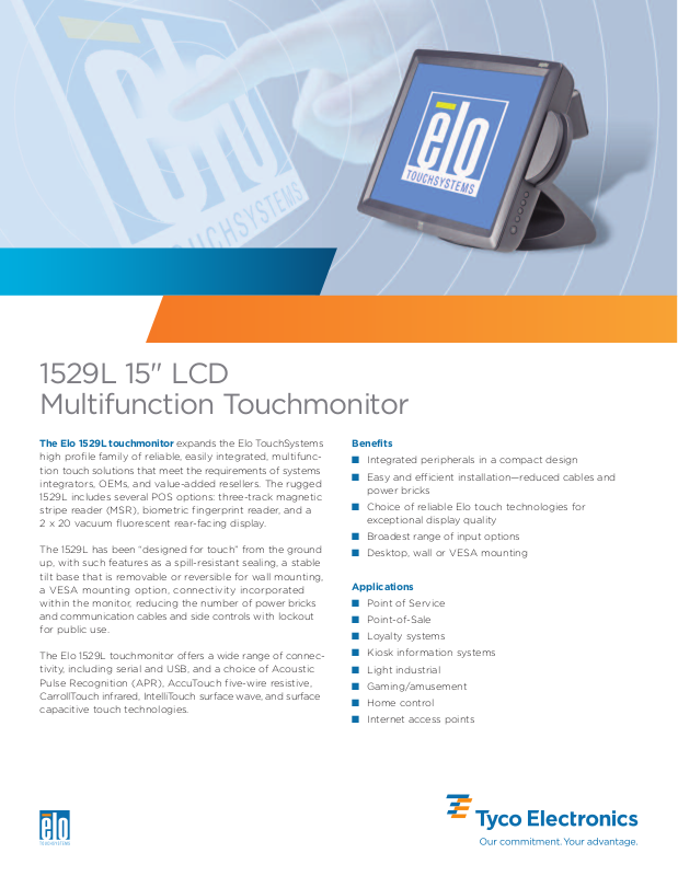 The Elo 1529L touchmonitor expands the Elo TouchSystems