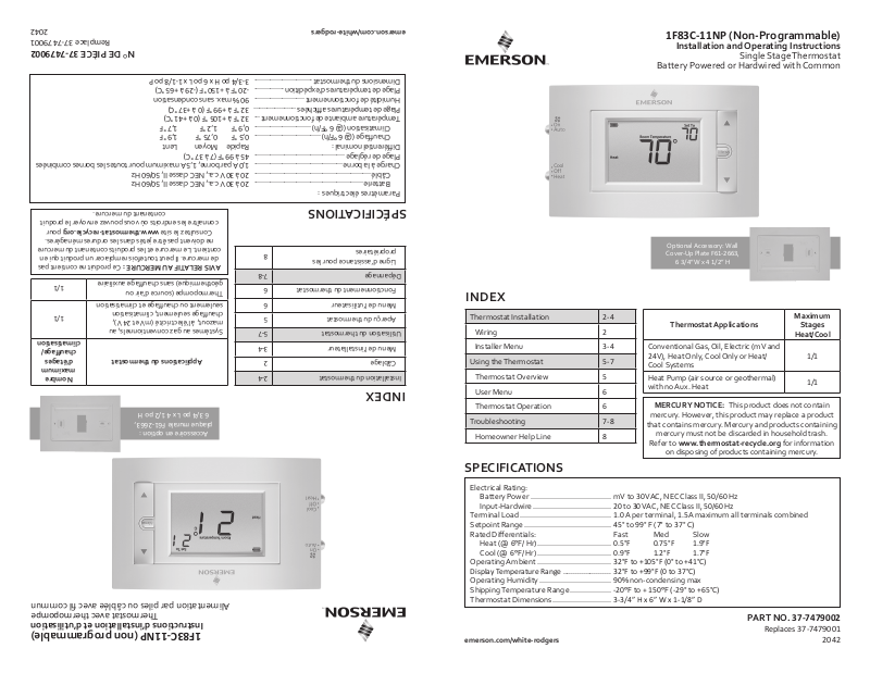 Thermostat Dimensions ........................... 3-3/4” H x 6” W x 1-1/8” D