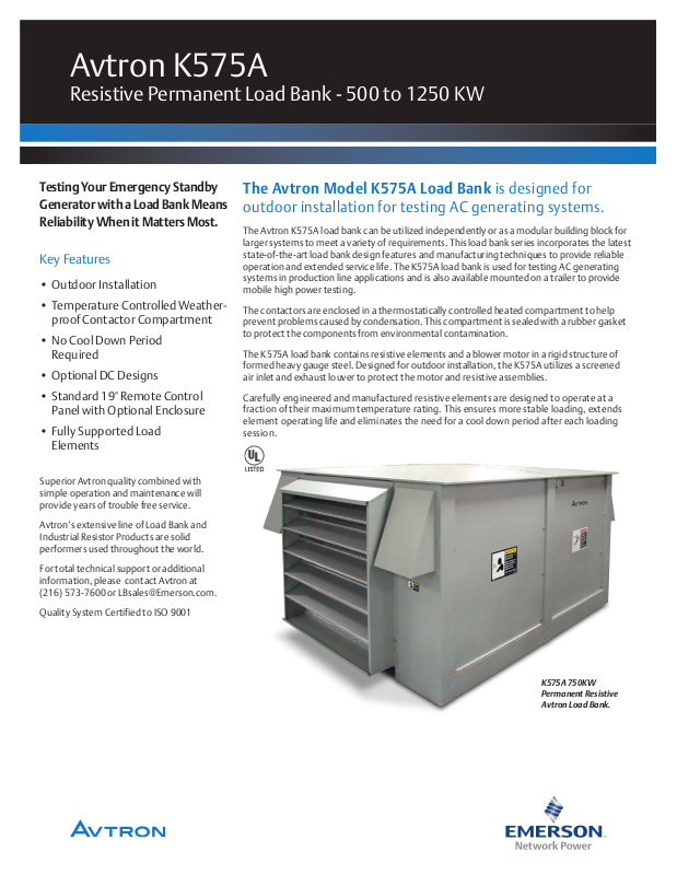 The Avtron Model K575A Load Bank is designed for
