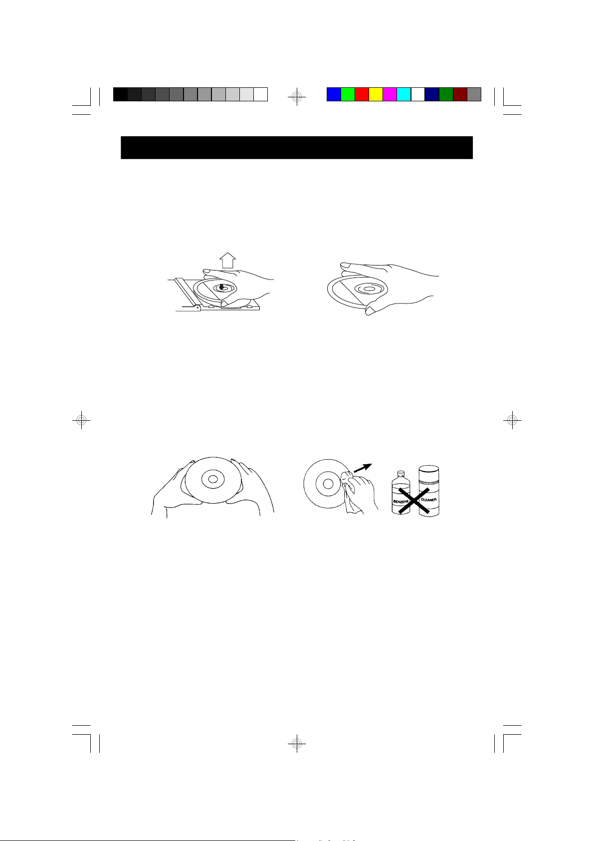 • Fingerprints and dust should be carefully wiped off the disc’s recorded surface