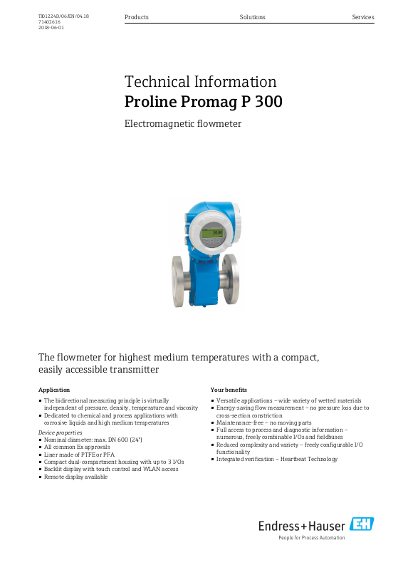 Promag PNominal diameter range: DN 15 to 600 (½ to 24")