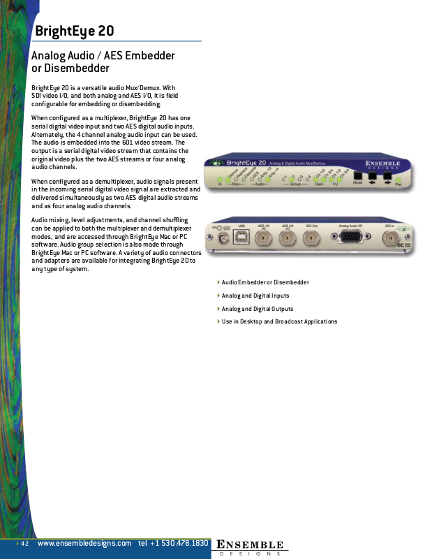 BrightEye 20 is a versatile audio Mux/Demux. With