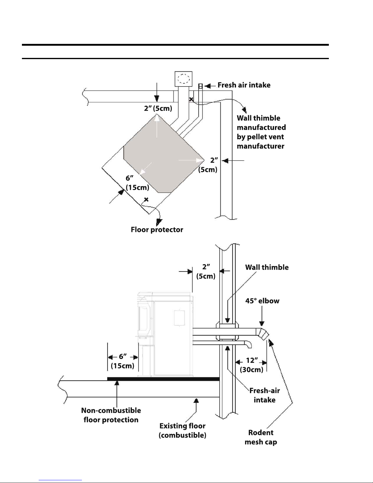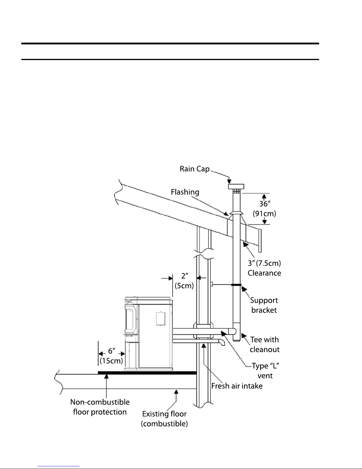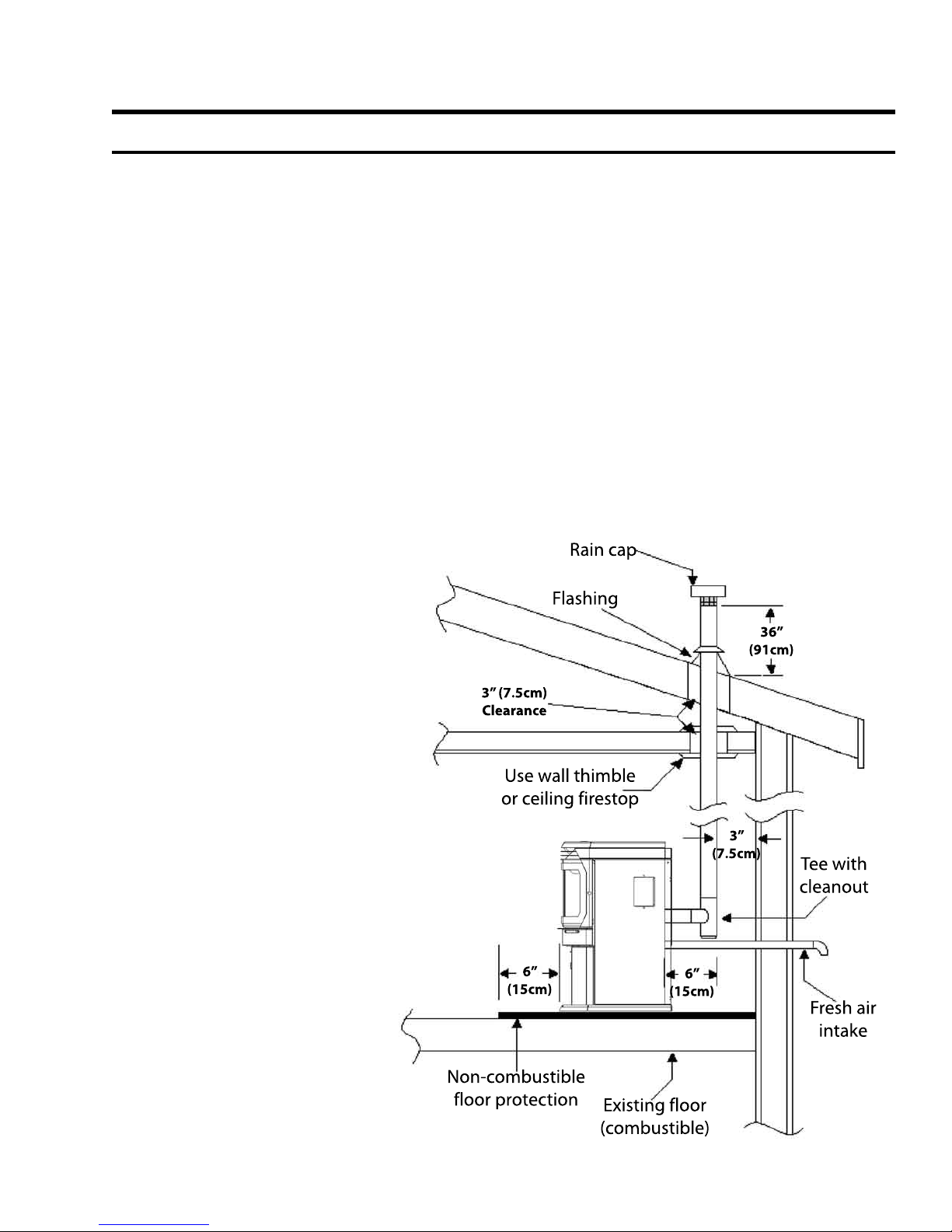 Store pellets at least 36” (1 m) away from the pellet stove.