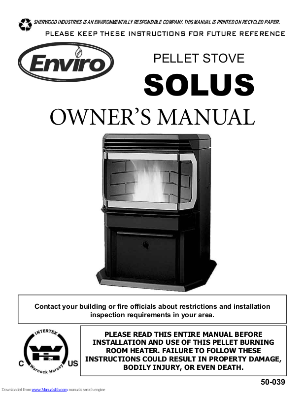 YOUR ENVIRO PELLET STOVE HAS BEEN DESIGNED TO BURN WOOD PELLETS ONLY. DO
