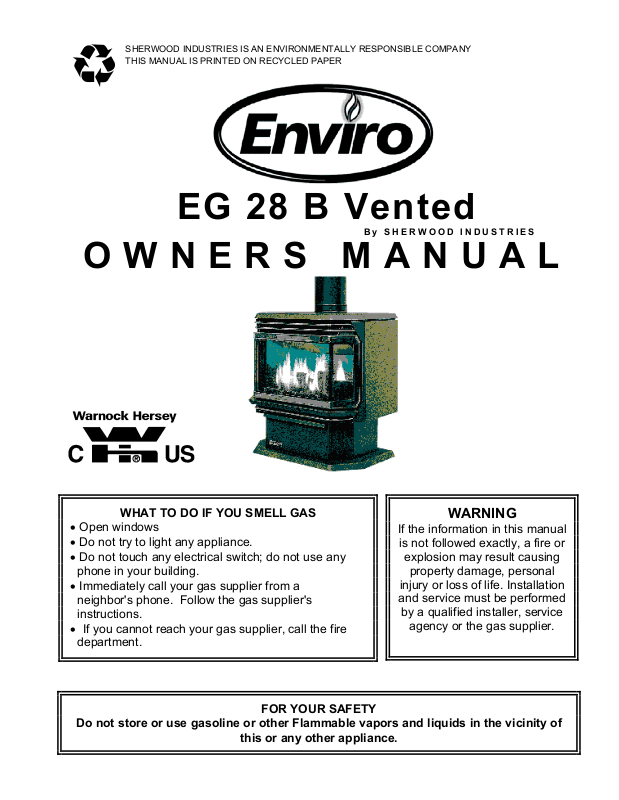 • All "ENVIROGAS" gas-fired appliances must be