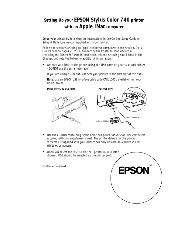 Use the CD-ROM conta ining Stylus Color 740 printer drivers for iMa c com pute rs