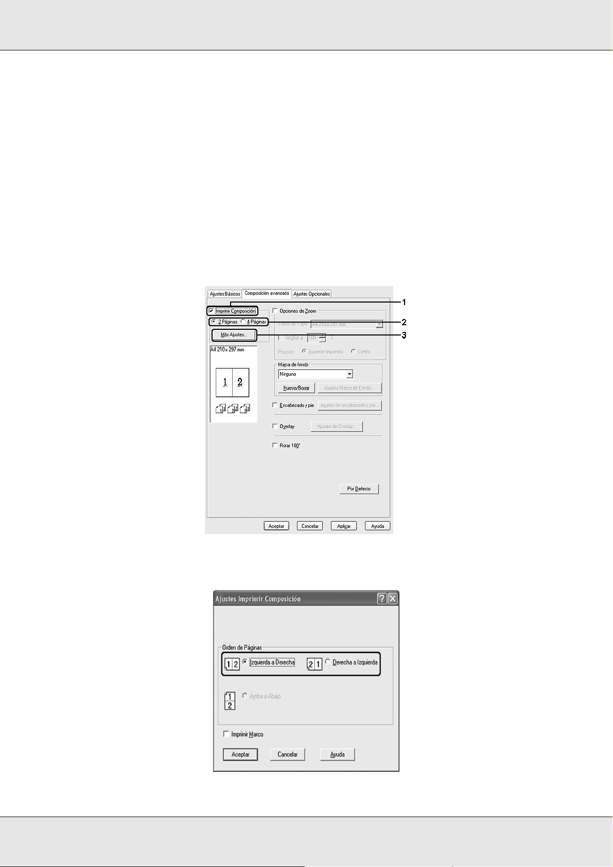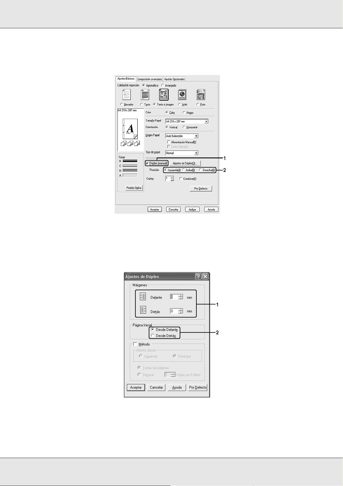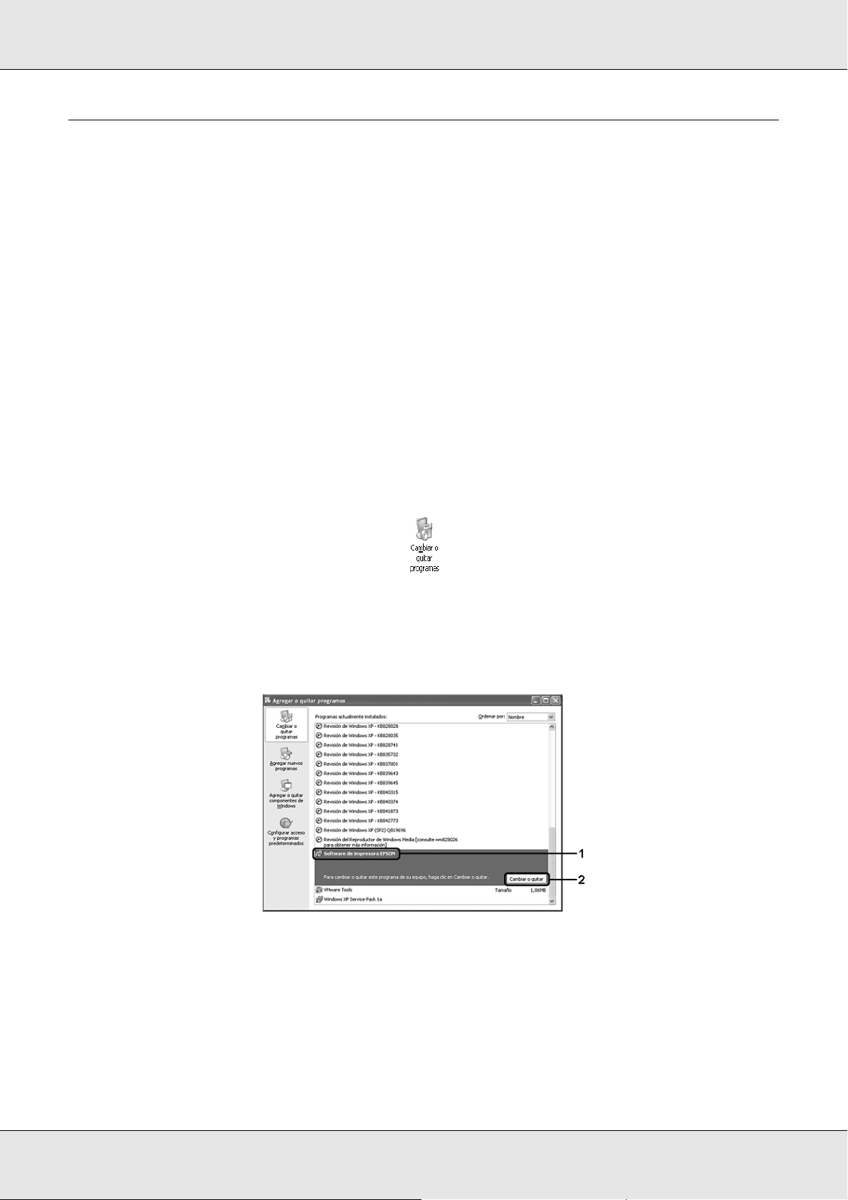 ❏En Windows XP, XP x64 o 2000, consulte “Con Windows XP, XP x64 o 2000” en la