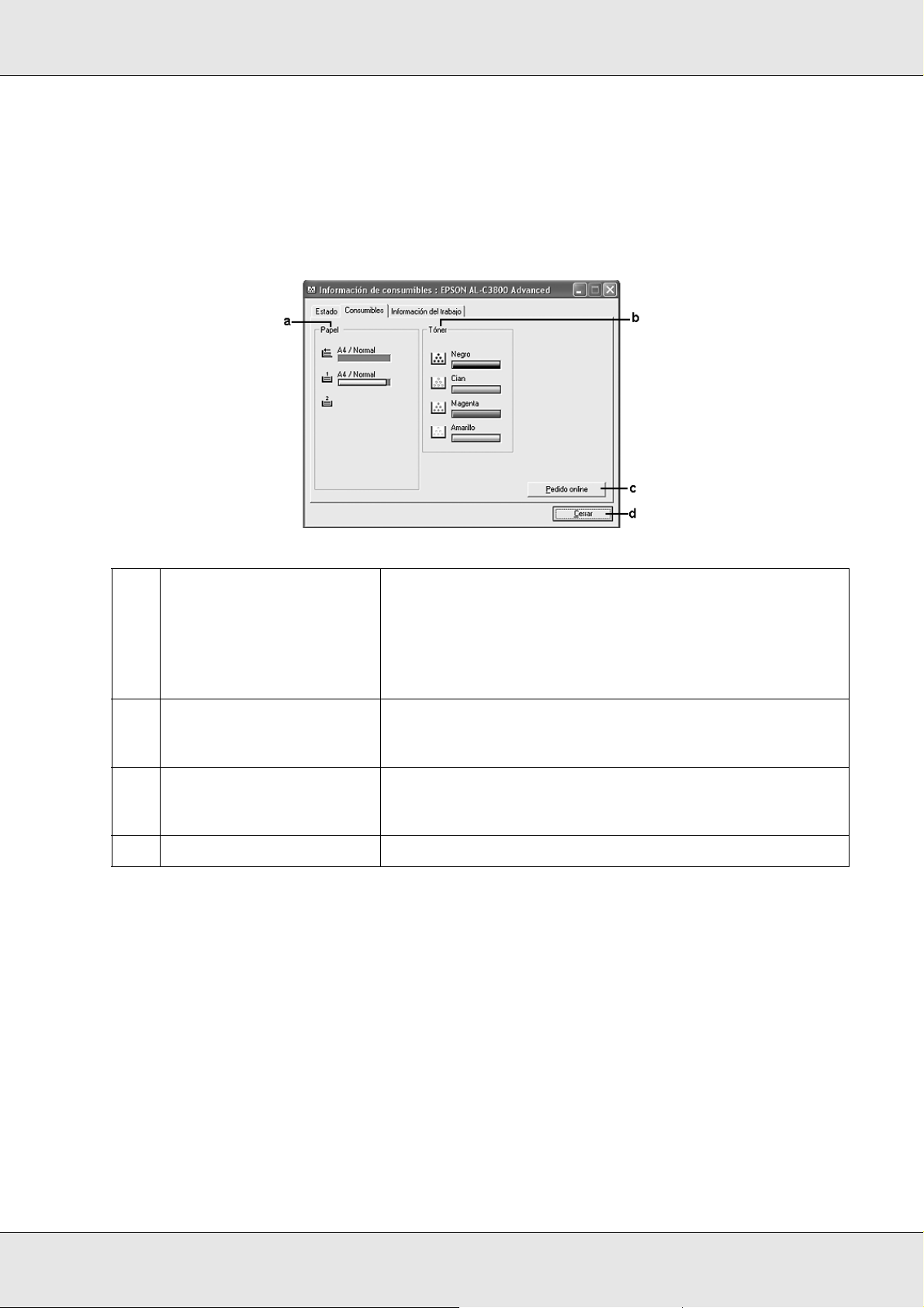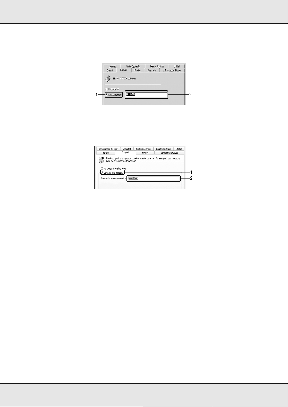 ❏Cuando comparta la impresora, configure EPSON Status Monitor de forma que pueda
