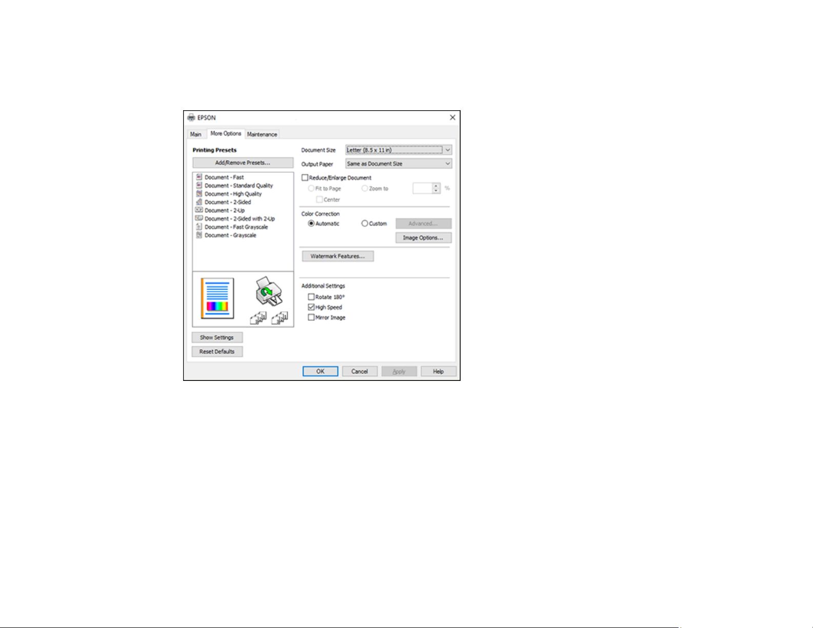 Note: The built-in Epson driver in Windows 10 S does not include all the available print settings for your