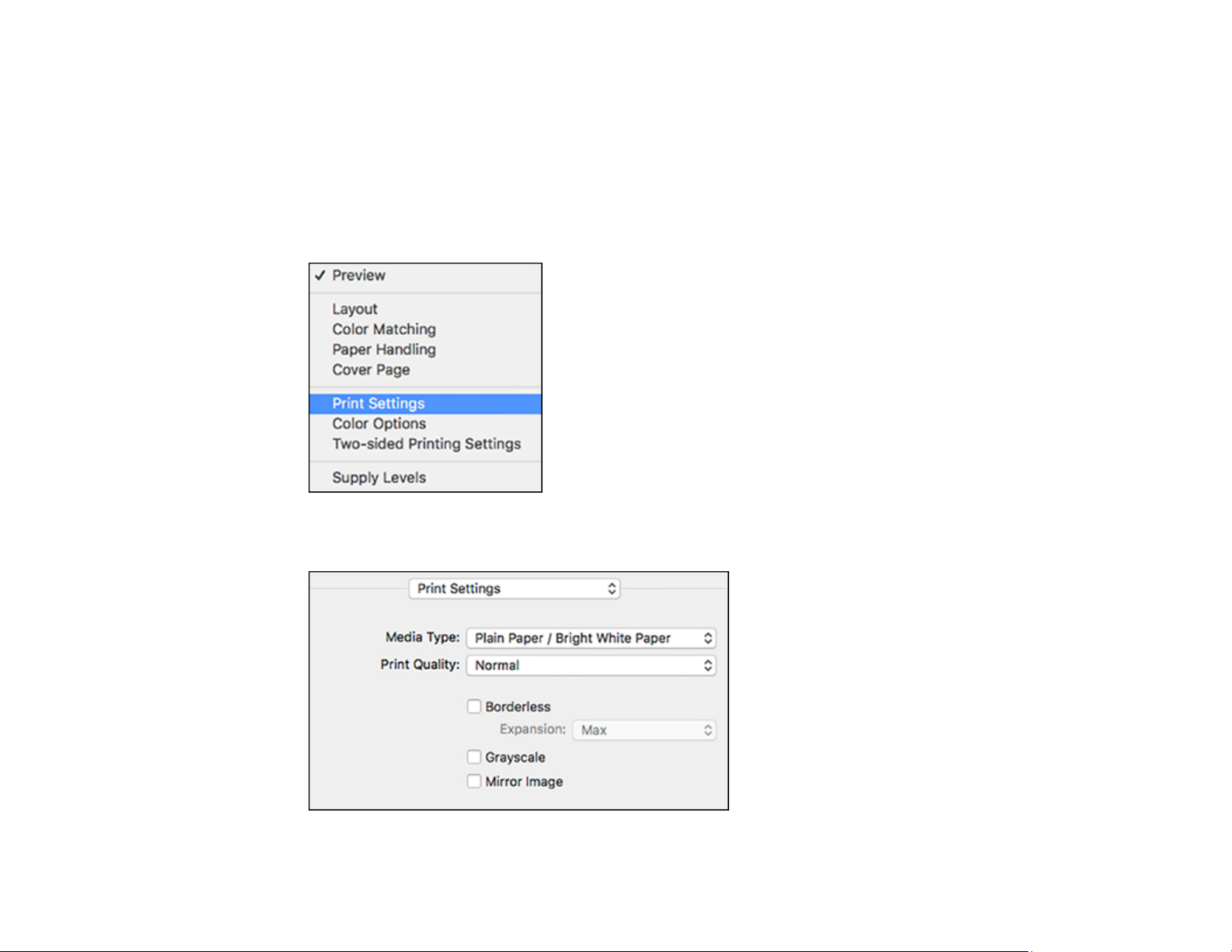 8.Select Print Settings or Printer Features from the pop-up menu.