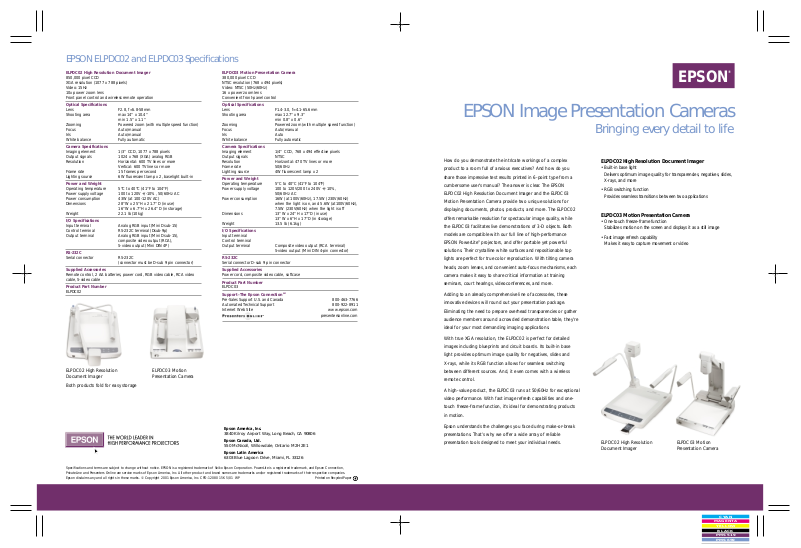 With true XGA resolution, the ELPDC02 is perfect for detailed