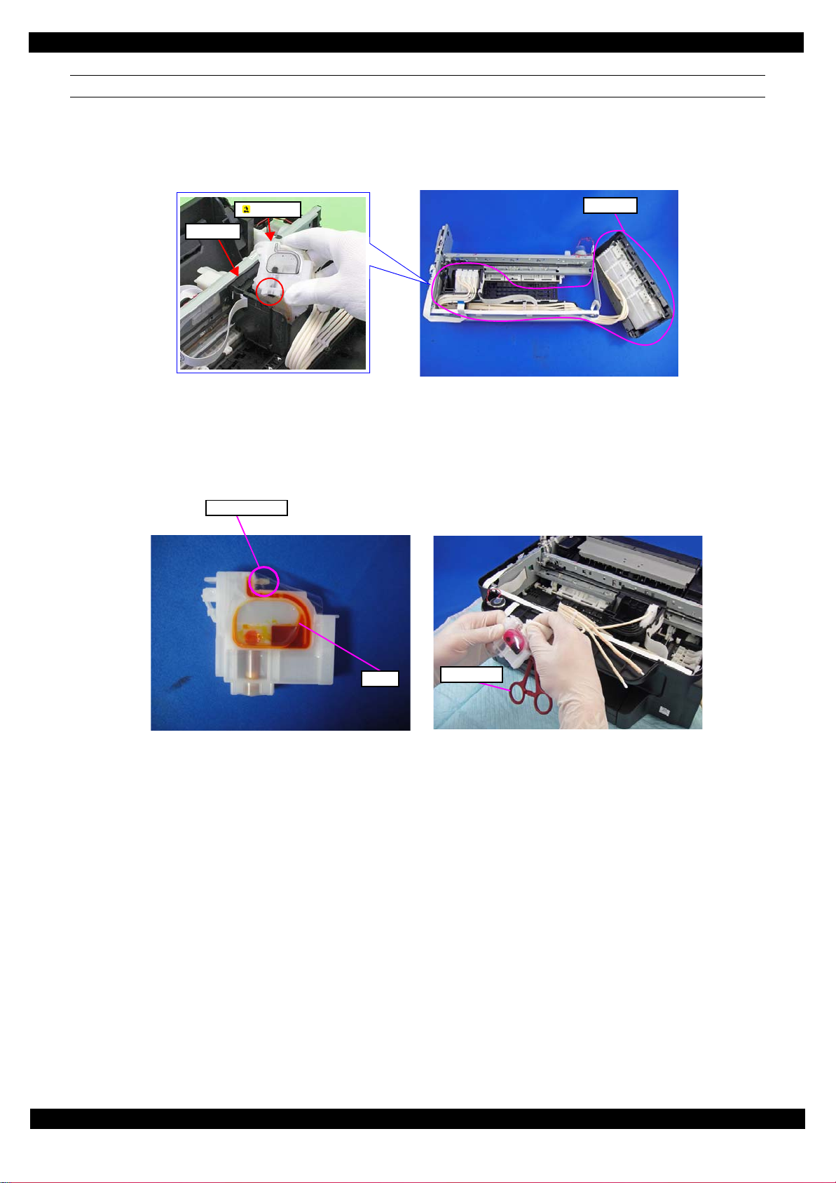 1. Always wear protective goggles for disas sembly and reassembl y to prote ct your eye s from ink in wor king. If