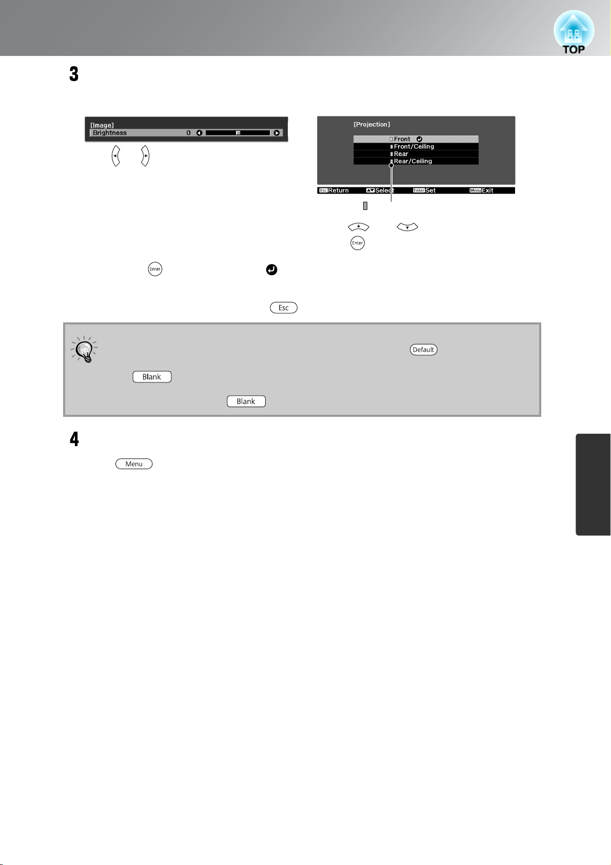 , etc. Indicates buttons on the remote control or projector's control panel.