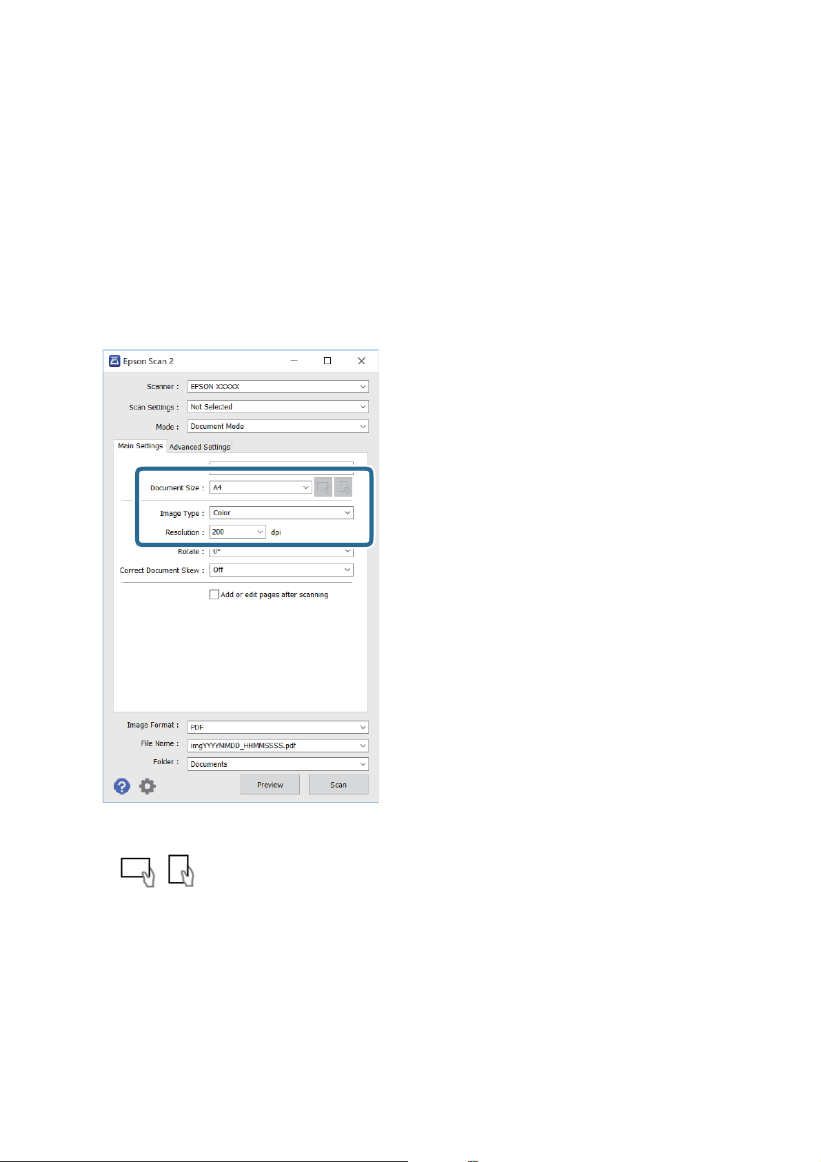 ❏ Le paramètre Source du document est déni en tant que Vit re du sc ann er . Vous ne pouvez pas modier ce
