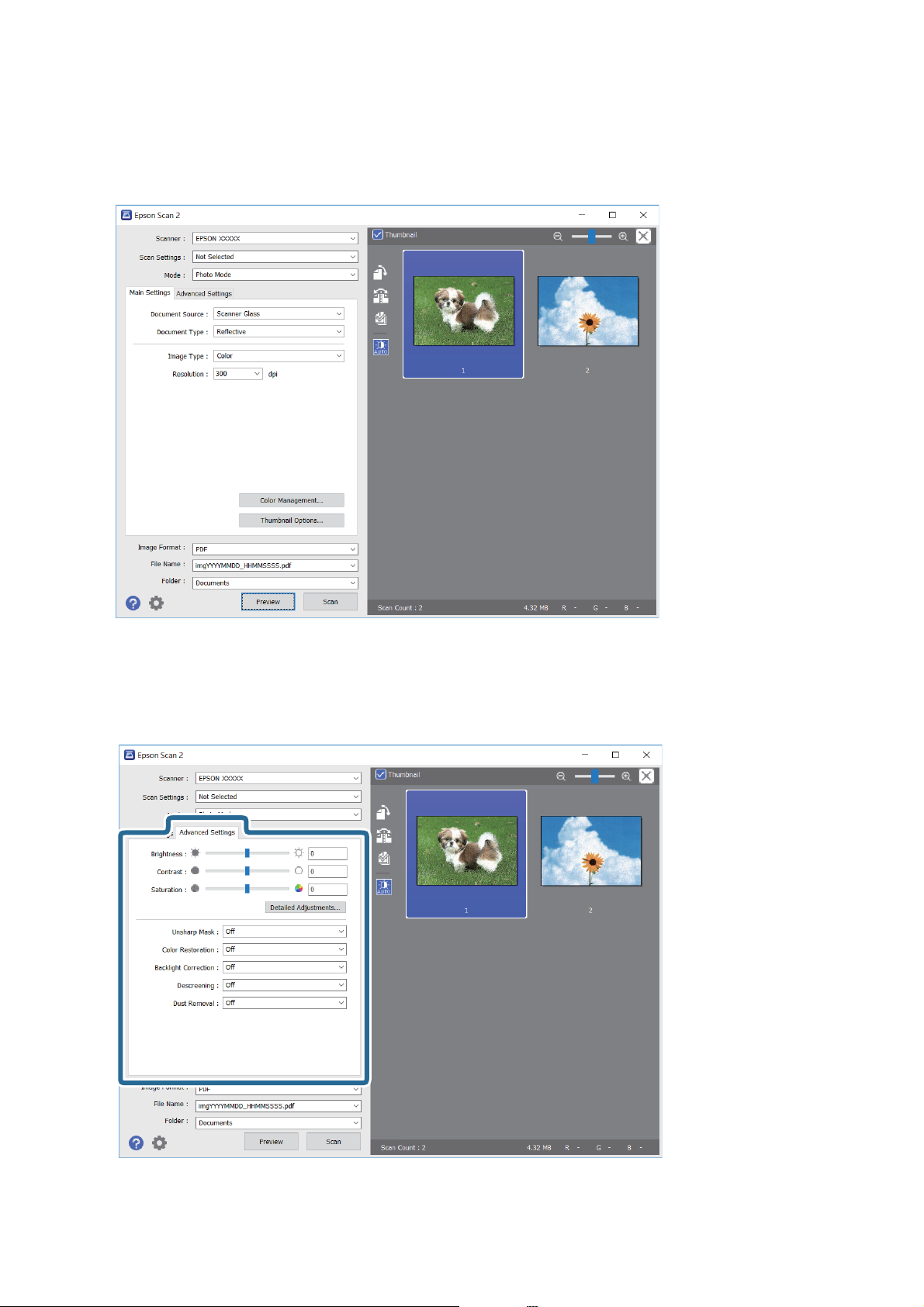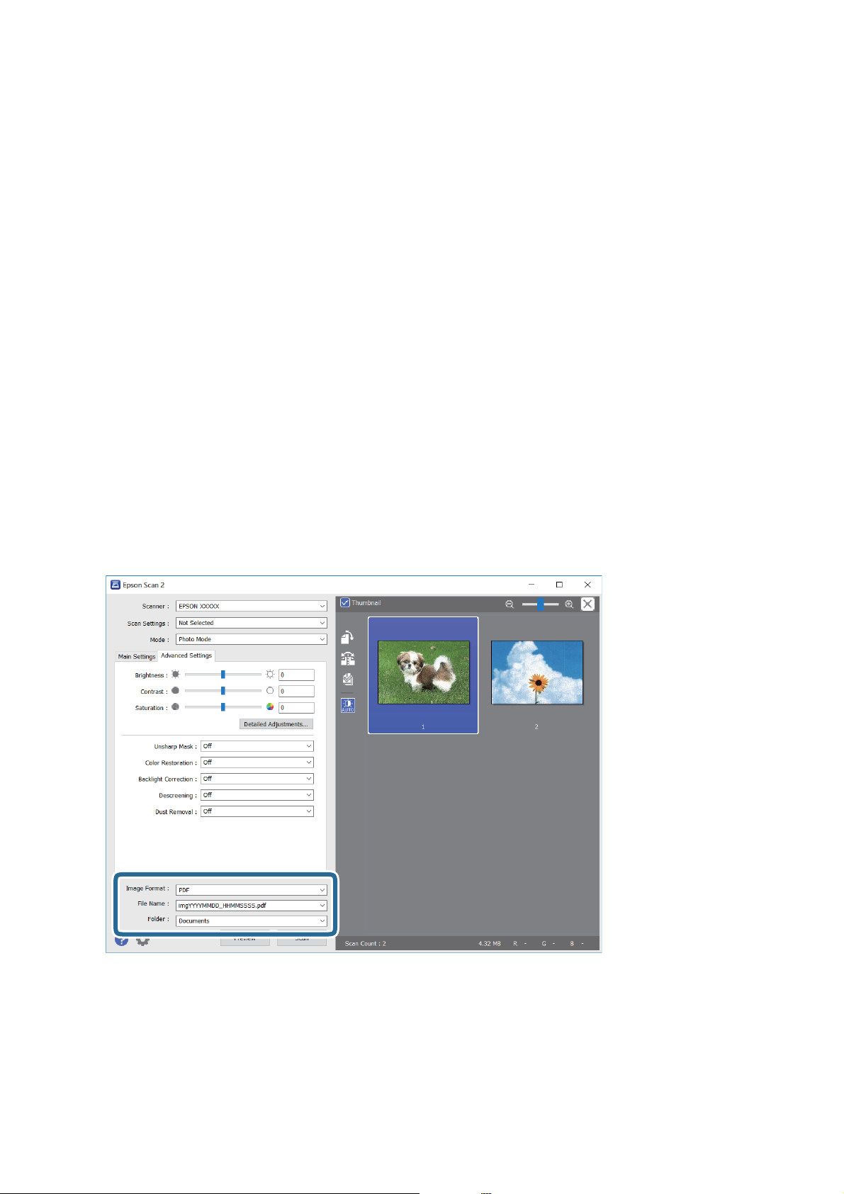 ❏ Sortie d'image double (Windows uniquement) : vous pouvez numériser une fois et enregistrer deux