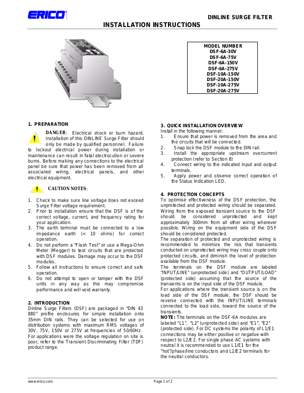 Installation of this DINLINE Surge Filter should