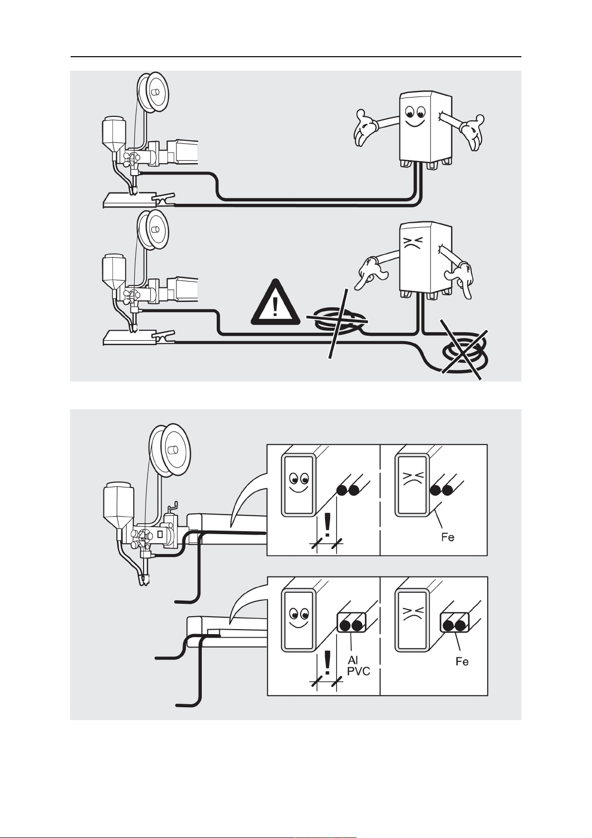 Mantenga la fuente de alimentación y los cables de soldadura tan
