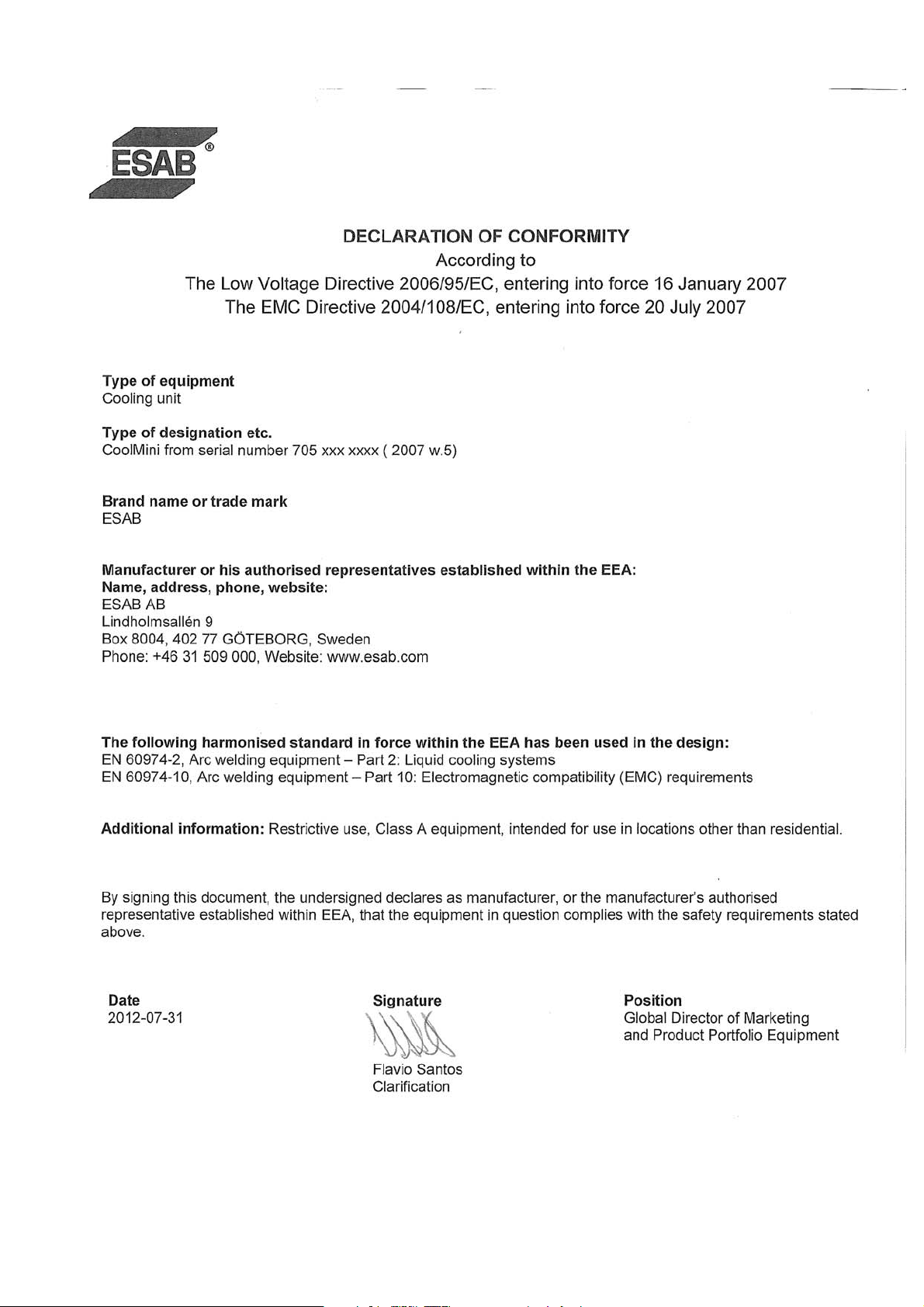 Technical documentation is available on the Internet at www.esab.com