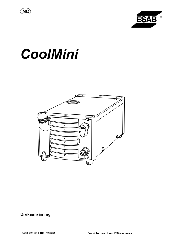 Som kjølevæske anbefales ESABs kjølevæske, se tilbehør på side 57.