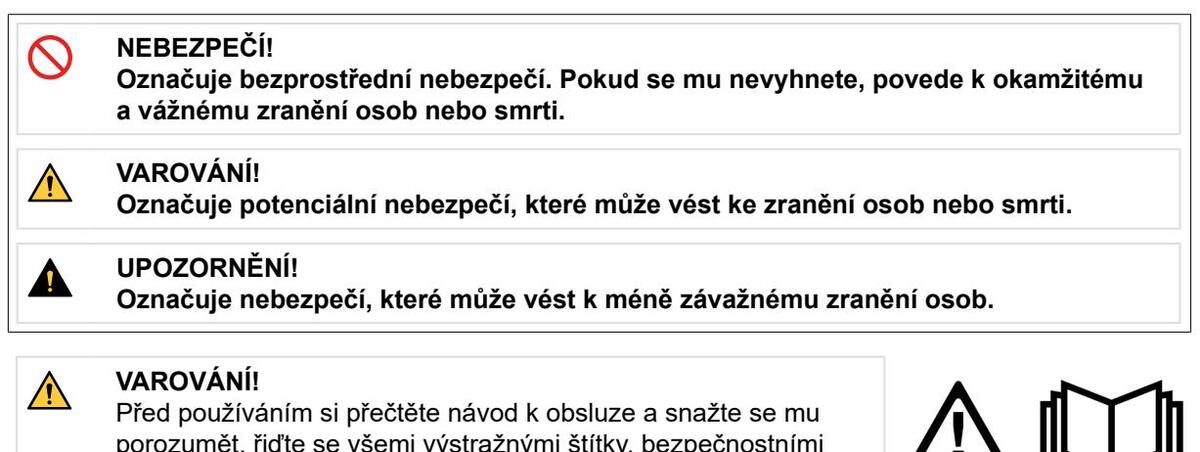 V tomto návodu se symboly používají v následujícím významu: Znamená Pozor! Buďte pozorní!
