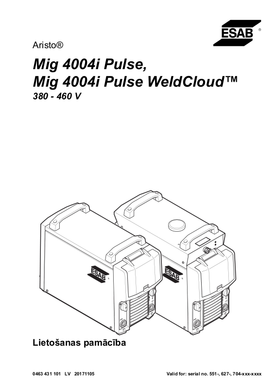 Ierīce Mig 4004i Pulse un Mig 4004i Pulse WeldCloud™ ir izstrādāta un pārbaudīta saskaņā