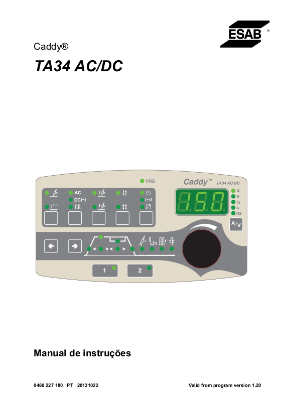 Pode transferir da Internet os manuais de instruções noutras línguas: www.esab.com