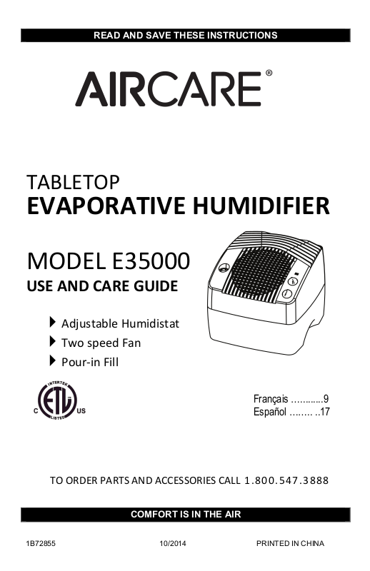 order parts, wicks and chemicals call 1-800-547-3888. This humidifier uses wick #