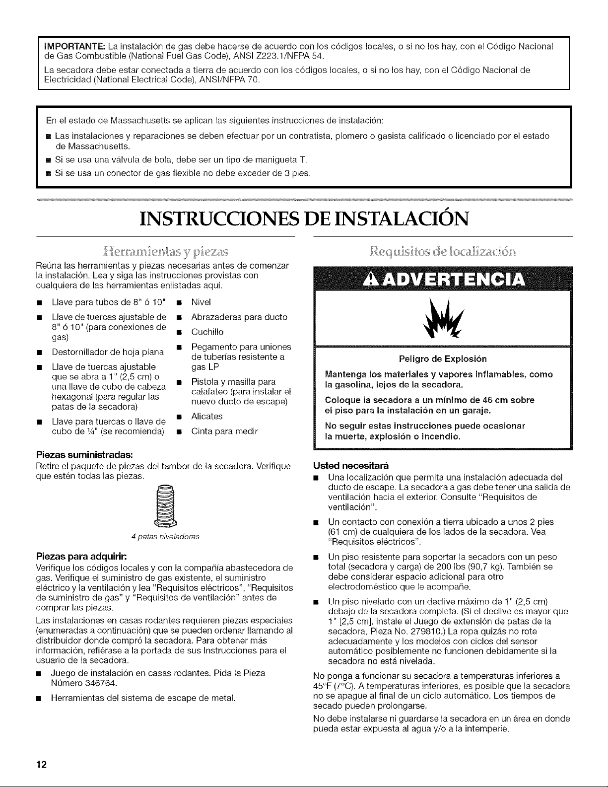 29" (73.7 CM) GAS DRYER INSTALLATION