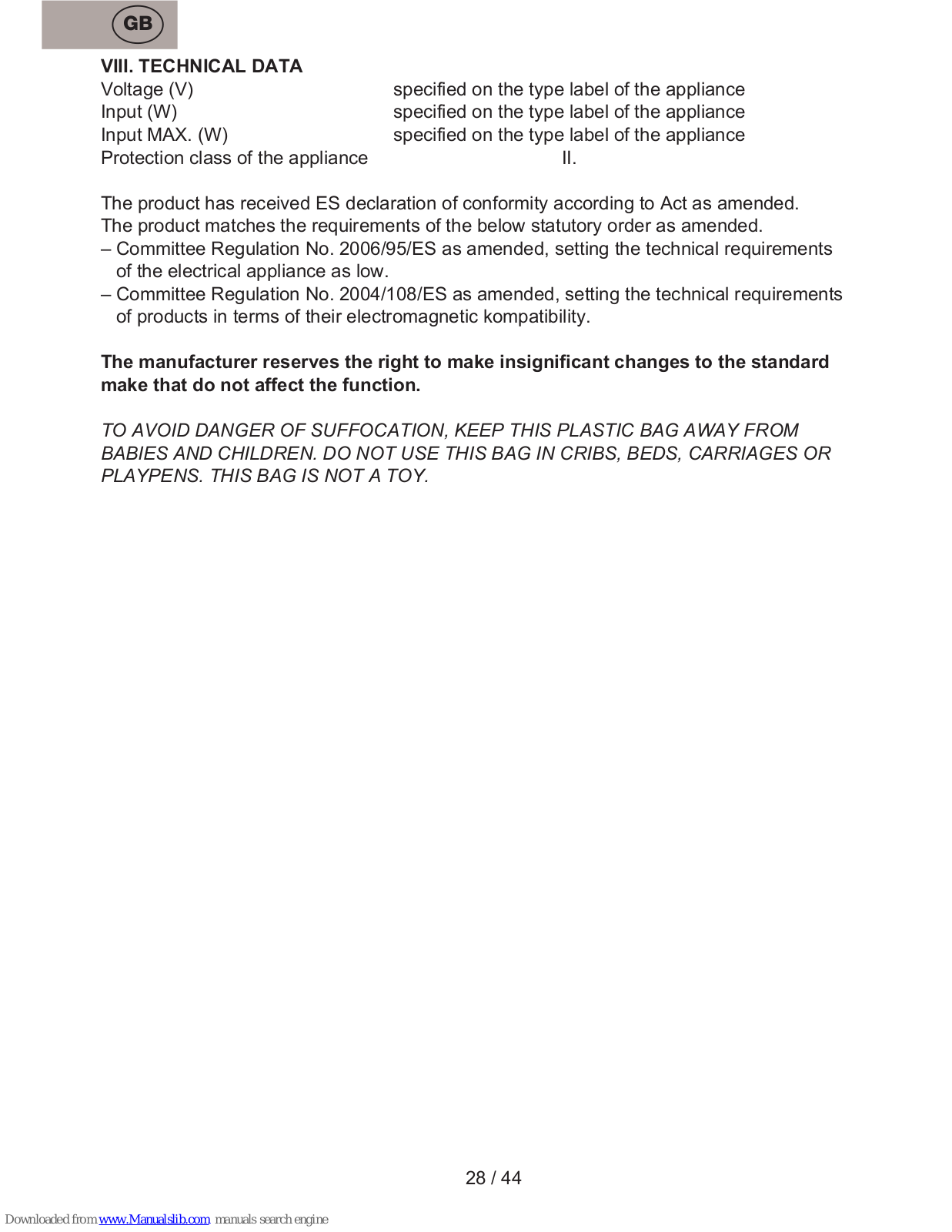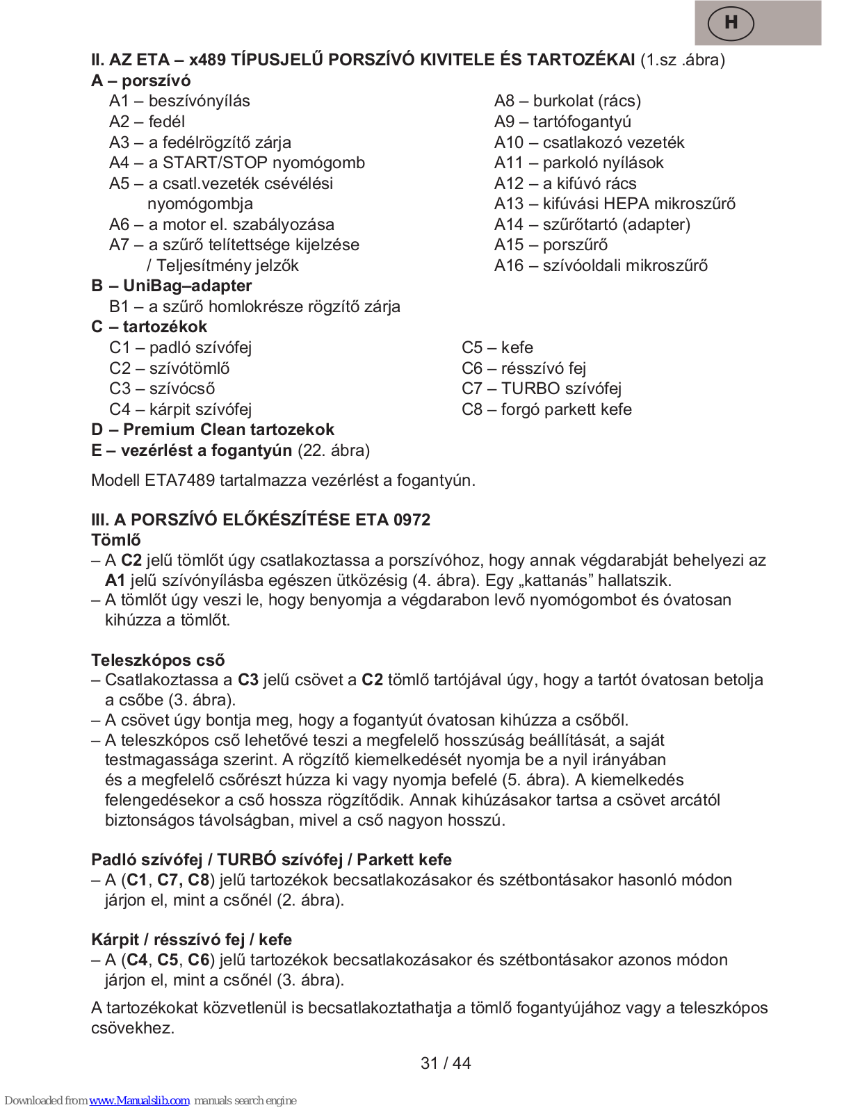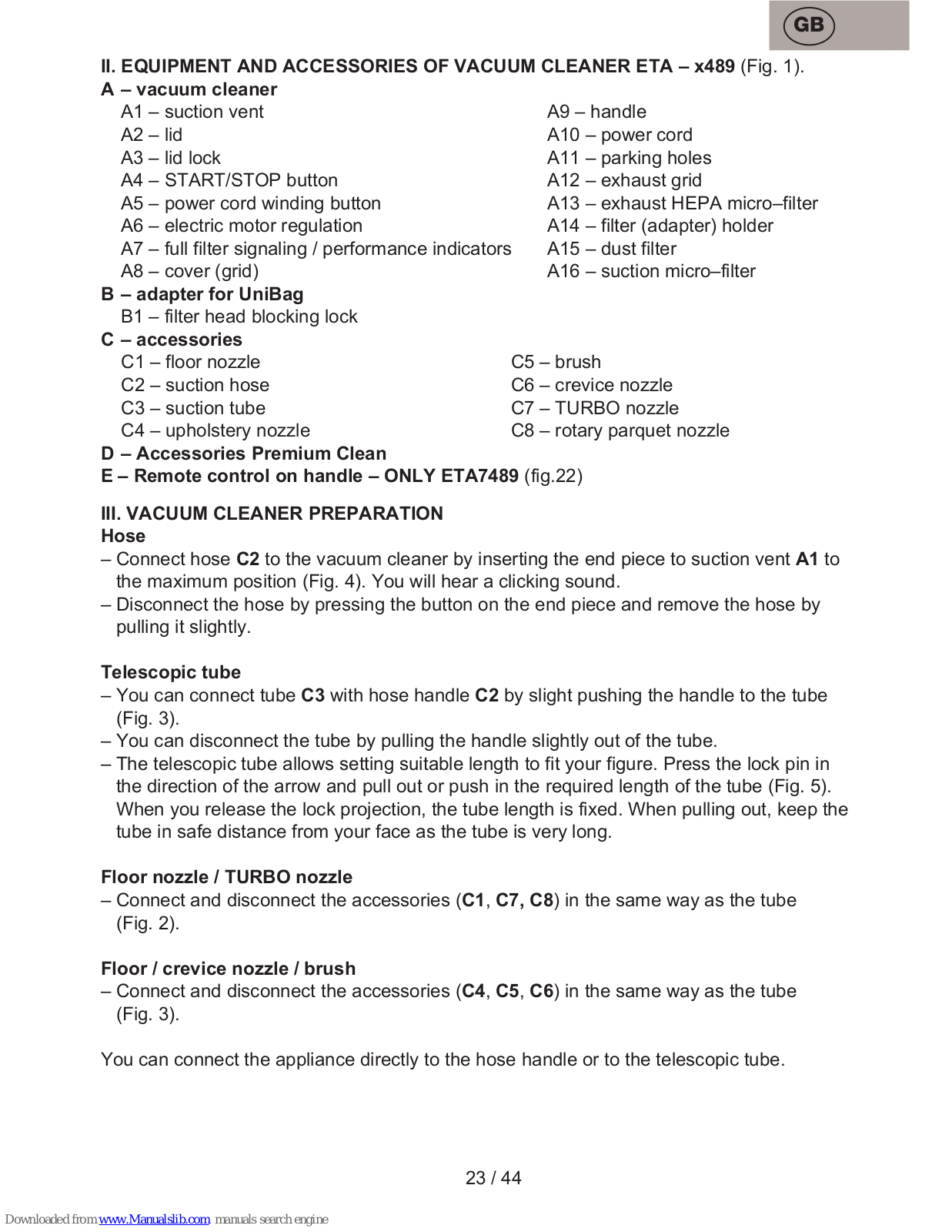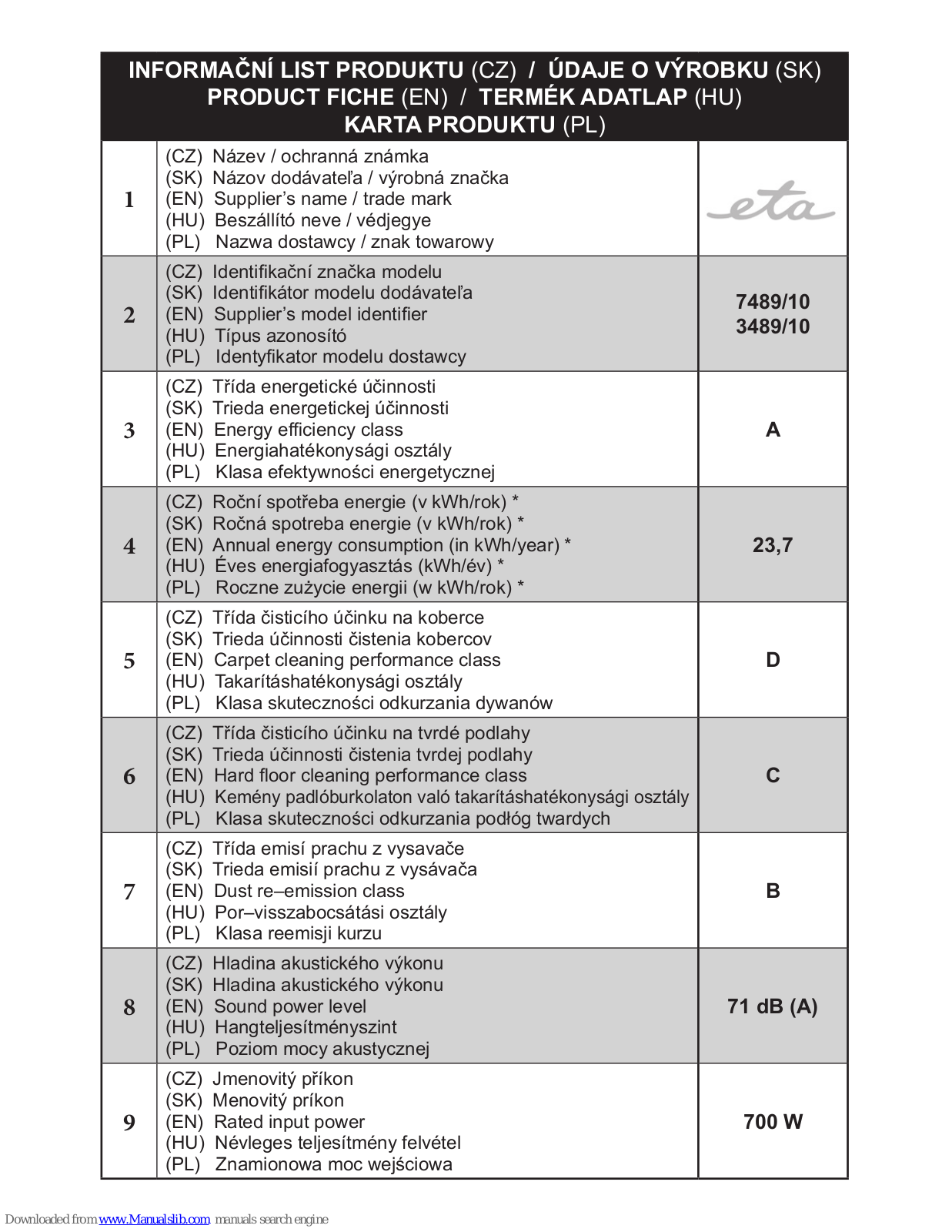 eta BELO 3489, BELO 7489 Instructions For Use Manual
