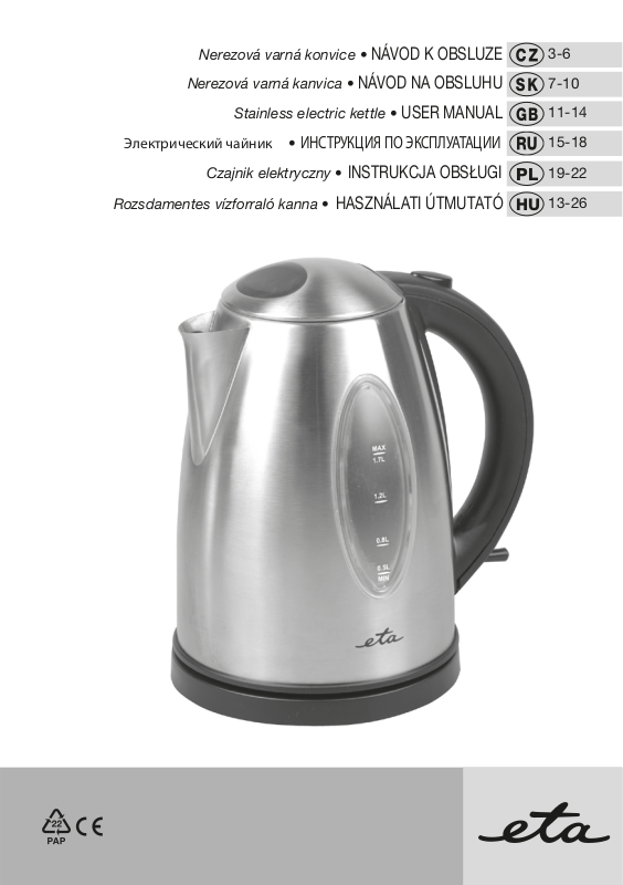 GYÁRTJA: ETA a.s., Zelený pruh 95/97, 147 00 Praha 4-Bráník, Cseh Köztársaság.
