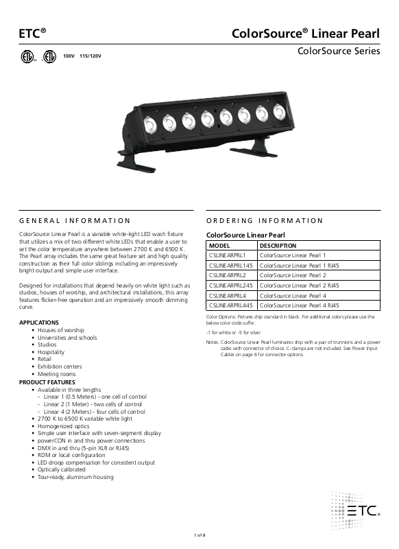 ETC ColorSource Linear Pearl 2 Data Sheet