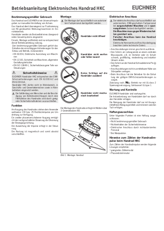 EUCHNER Handräder HKC entsprechen den EMVSchutzanforderungen nach EN 61000-6-2 und