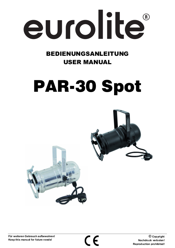 Wir freuen uns, dass Sie sich für einen EUROLITE PAR-30 Spot entschieden haben. Wenn Sie