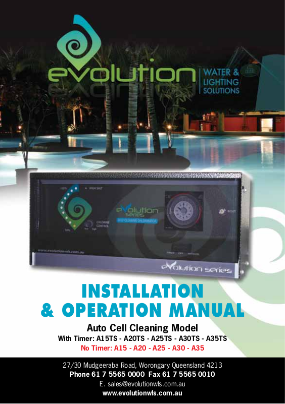 Congratulations on purchasing an Evolution Series Saltwater Chlorinator for your swimming pool.
