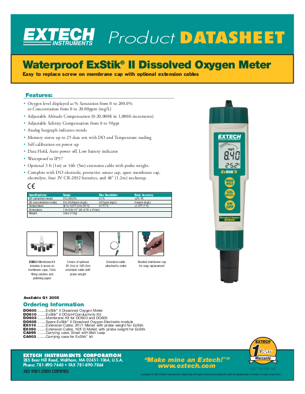DO610 ........ExStik®II DO/pH/Conductivity Kit