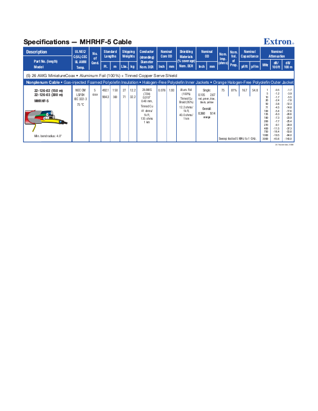 Specifications — MHRHF-5 CableSpecifications — MHRHF-5 Cable