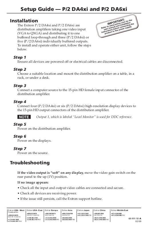 Connect four (P/2 DA4xi) or six (P/2 DA6xi) high-resolution display devices to