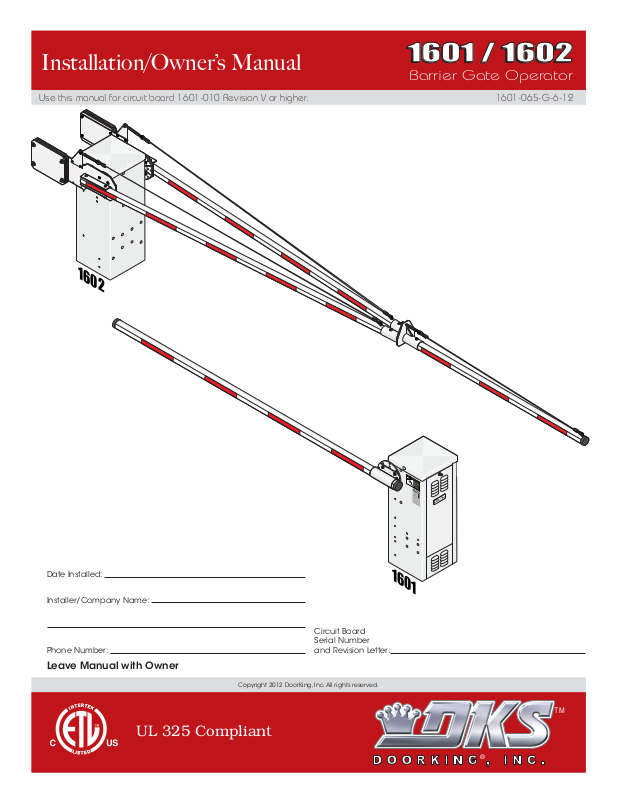 DoorKing, Inc. reserves the right to make changes in the products described in this manual without notice and without obligation of DoorKing, Inc. to notify any persons