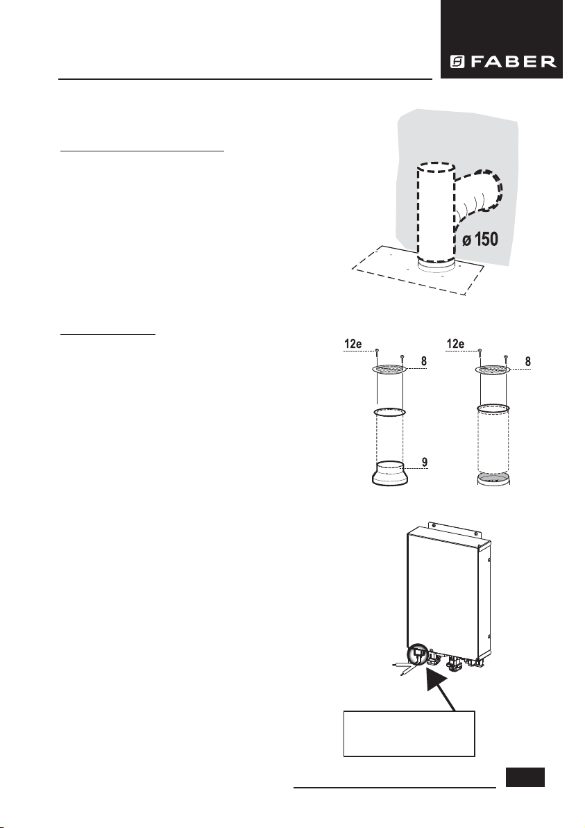 • Napojte odsavač na potrubí o průměru 150 mm.