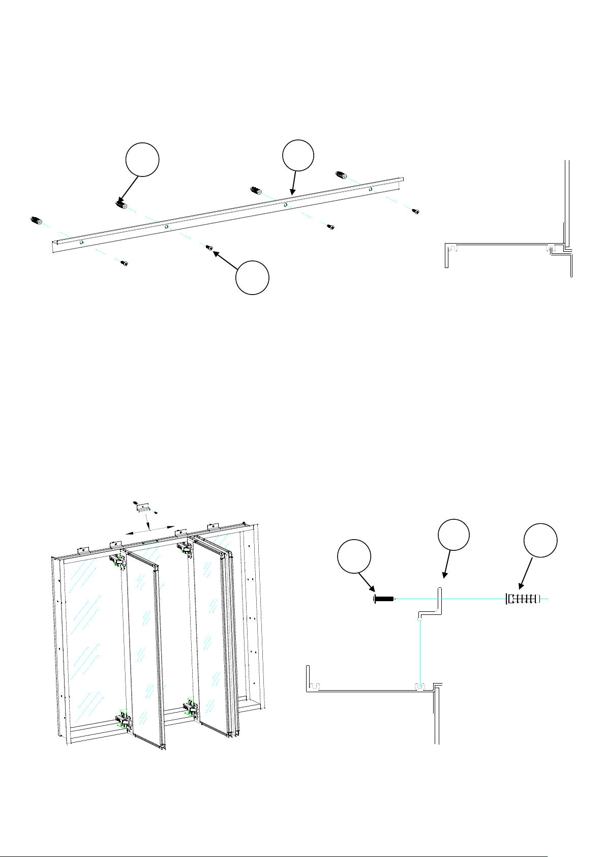 1. Mounting the bottom bracket to the wall and sit the mirror cabinet on it.