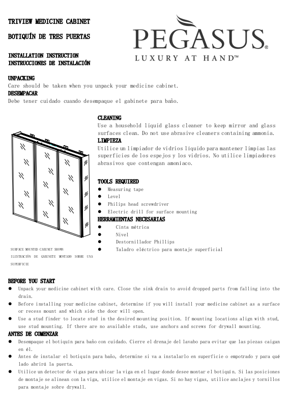 Before installing your medicine cabinet, determine if you will install your medicine cabinet as a surface