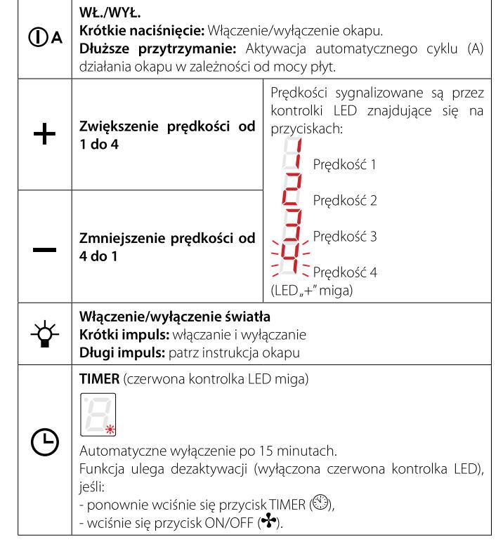Po zakończeniu gotowania pozostawić okap do momentu, gdy wszystkie opary i zapachy zostaną całkowicie zassane. Za pomocą funkcji timera można ustawić